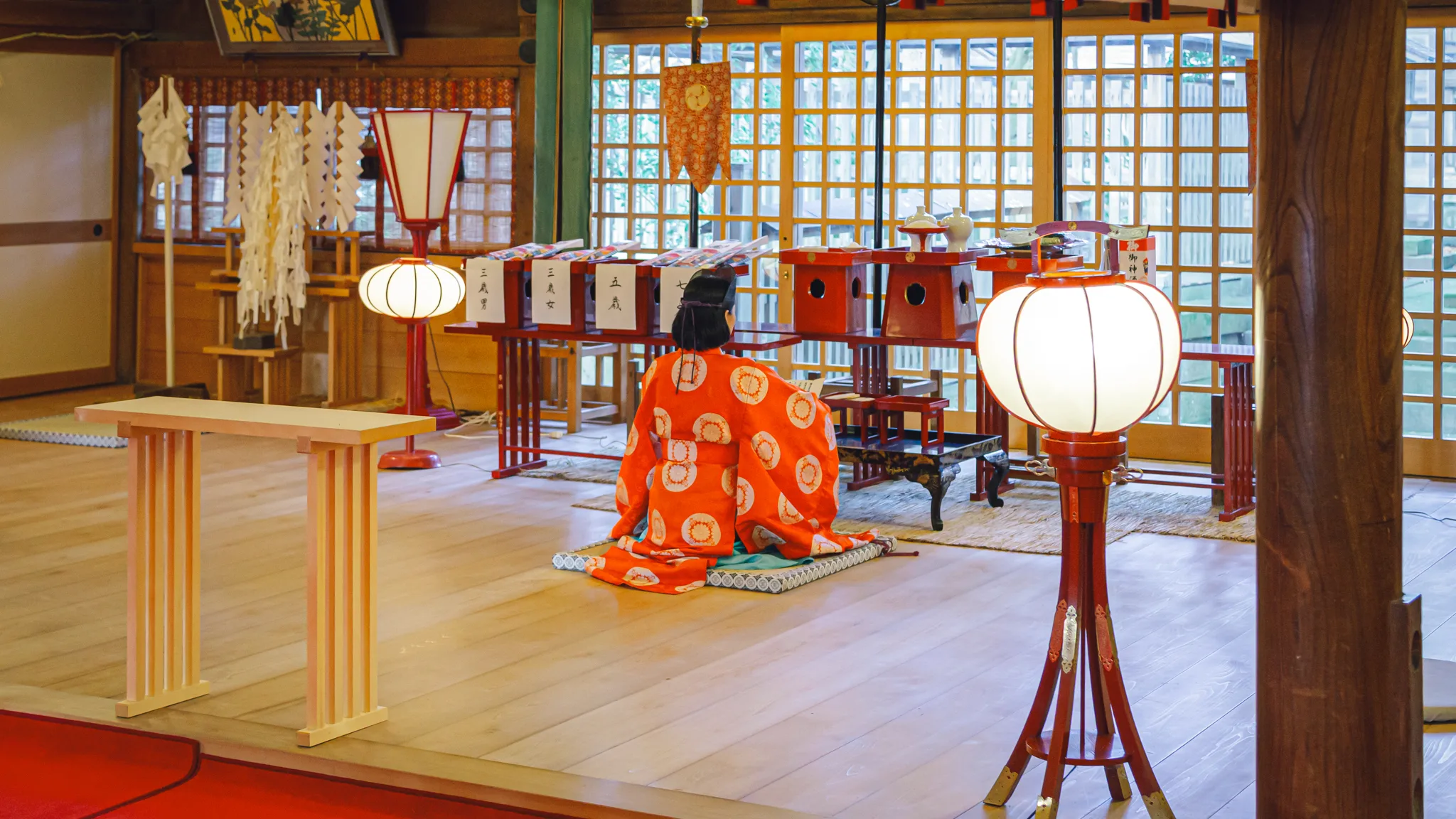 主祭神の他に、天照大神(あまてらすおおかみ)と建速須佐之男(すさのお)命の誓約から生まれた五男三女の神様など、十四柱を配祀しています。